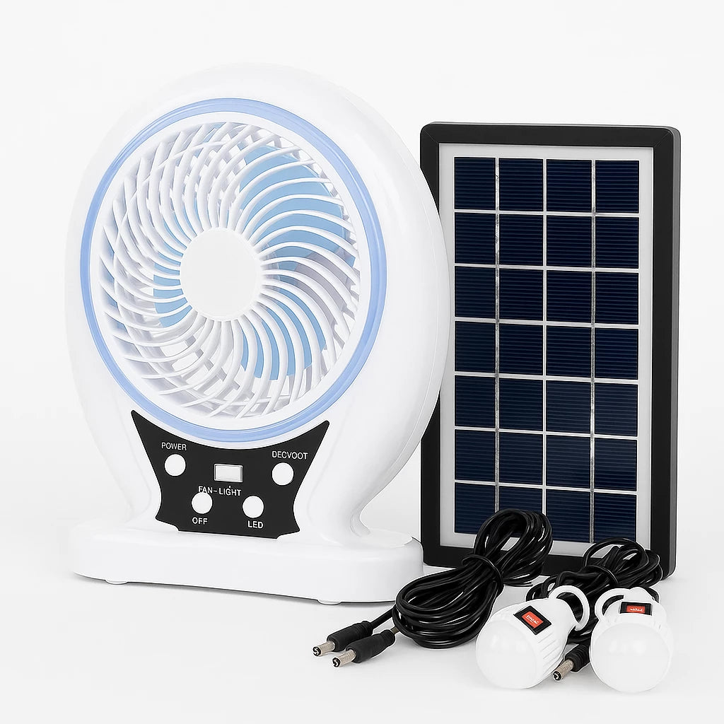 Solar Fan light Solar Powered AC DC Rechargeable Solar Fan with Solar Panel and LED Bulb light for Outdoor LED Camping Lights